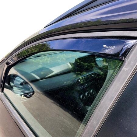 Накладные (клеевые) дефлекторы тоже используются, но обычно для автомобилей, у которых геометрия рамки двери не позволяет установить вставной вариант. Они клеятся на двусторонний 3M-скотч и подходят как универсальное решение.