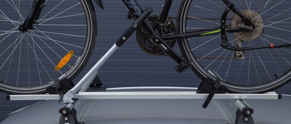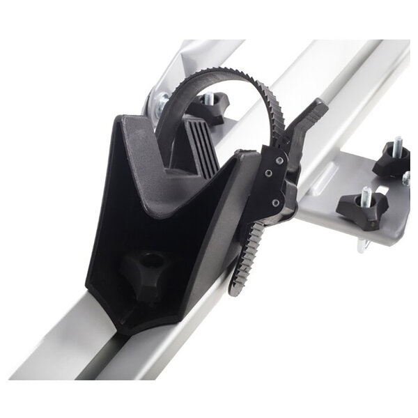 Велобагажник Tour Alu для перевозки одного байка на крыше автомобиля. Легко устанавливается на дуги фактически всех типов сечения:
