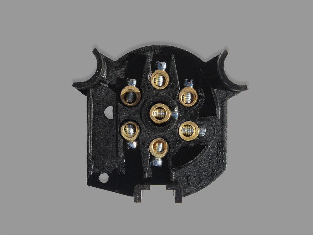 Предназначена для подключения электрики прицепного устройства. Корпус розетки изловлен из высококачественного пластика, соединительные контакты изготовлены из латуни.