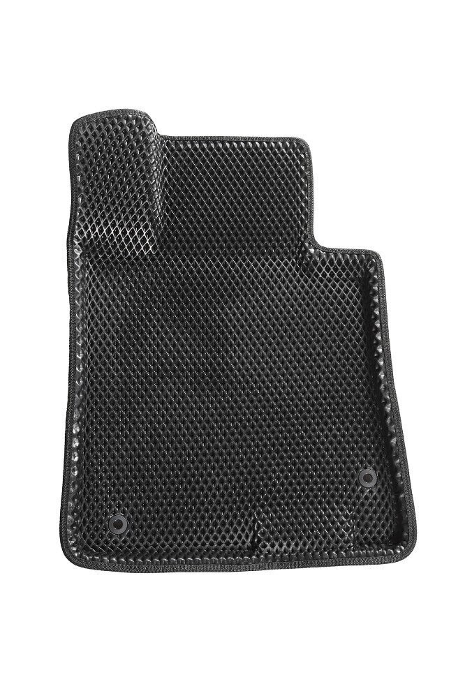 Двухслойные коврики ЕВА 3Д «Ромб» состоят из верхнего слоя EVA и нижнего текстильного слоя, зацепляющегося за ковролин автомобиля, дополнительно имеются крепежные клипсы