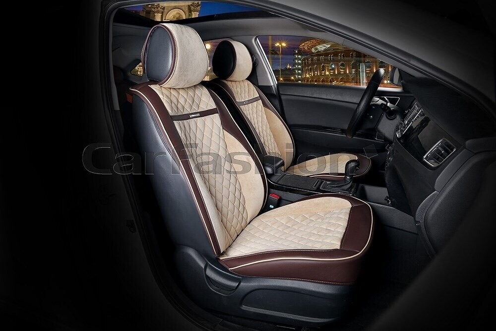 CarFashion (Россия) Комплект Накидок «BARCELONA PLUS» коричневый/бежевый/коричневый/бежевый 22378