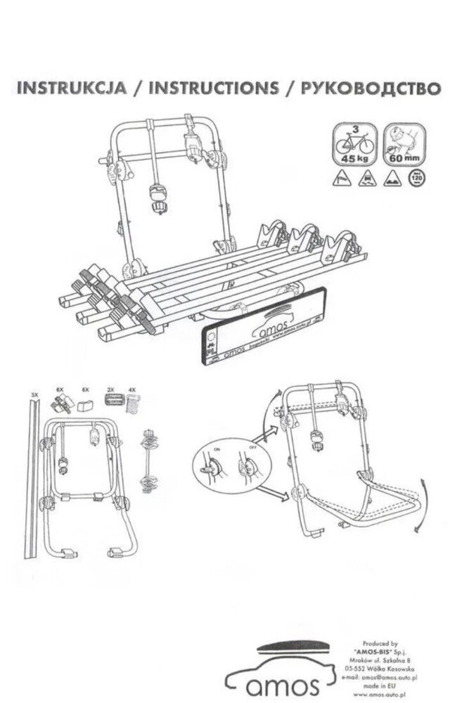 Amos (Польша) Багажная система AMOS Weekend PLUS - крепление для перевозки 3-х велосипедов на заднюю дверь и бампер автомобиля