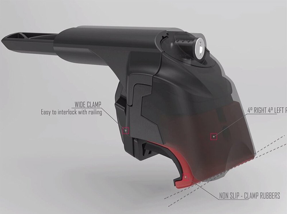 - В опору вмонтирован стопор предотвращающий нештатное выпадание Багажные поперечины