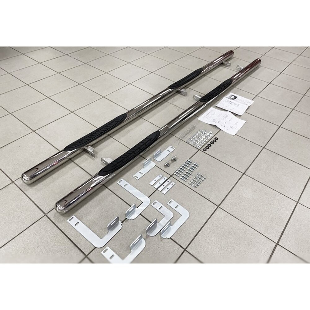 Комплект: 2 порога, 4 стальных кронштейна, инструкция по установке, упаковка