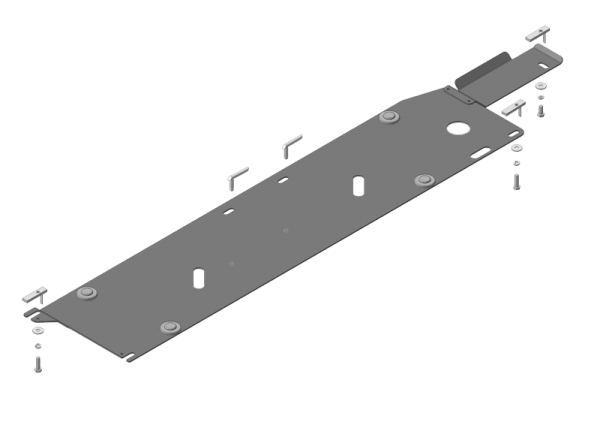 3. Средние точки Защиты закрепить к лонжерону с помощью КР 50 А10 М8х30, используя Гайки М8, Шайбы и Гр. Шайбы 8.