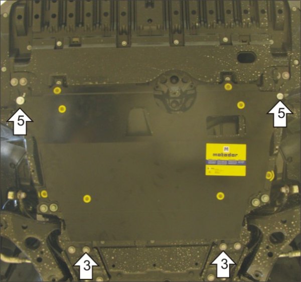 3. Установить задние точки крепления щита под штатные болты подрамника а/м.