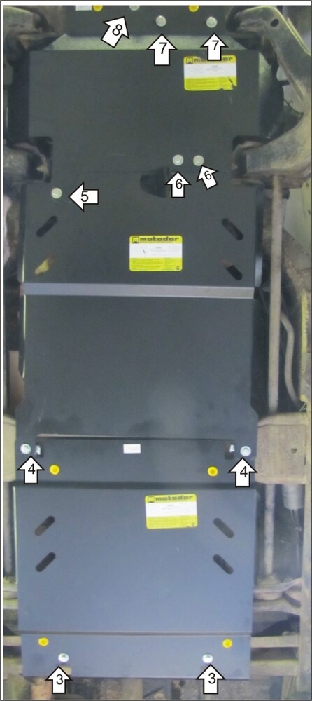 Защищаемые агрегаты: Двигатель, Передний дифференциал, Коробка переключения передач, Раздаточная коробка